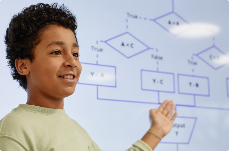 We teach kids essential tech skills through fun, hands-on learning. From coding and robotics to AI and game design, our programs are designed to spark curiosity and build real-world abilities—one line of code at a time. We provide hands-on, engaging tech education that helps kids build confidence, creativity, and problem-solving skills. Our curriculum is designed to make complex concepts easy to understand—and fun to learn—through real projects and personalized support.